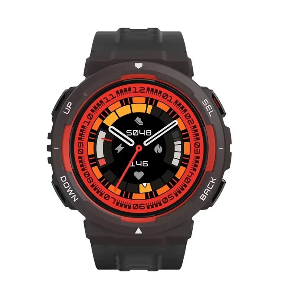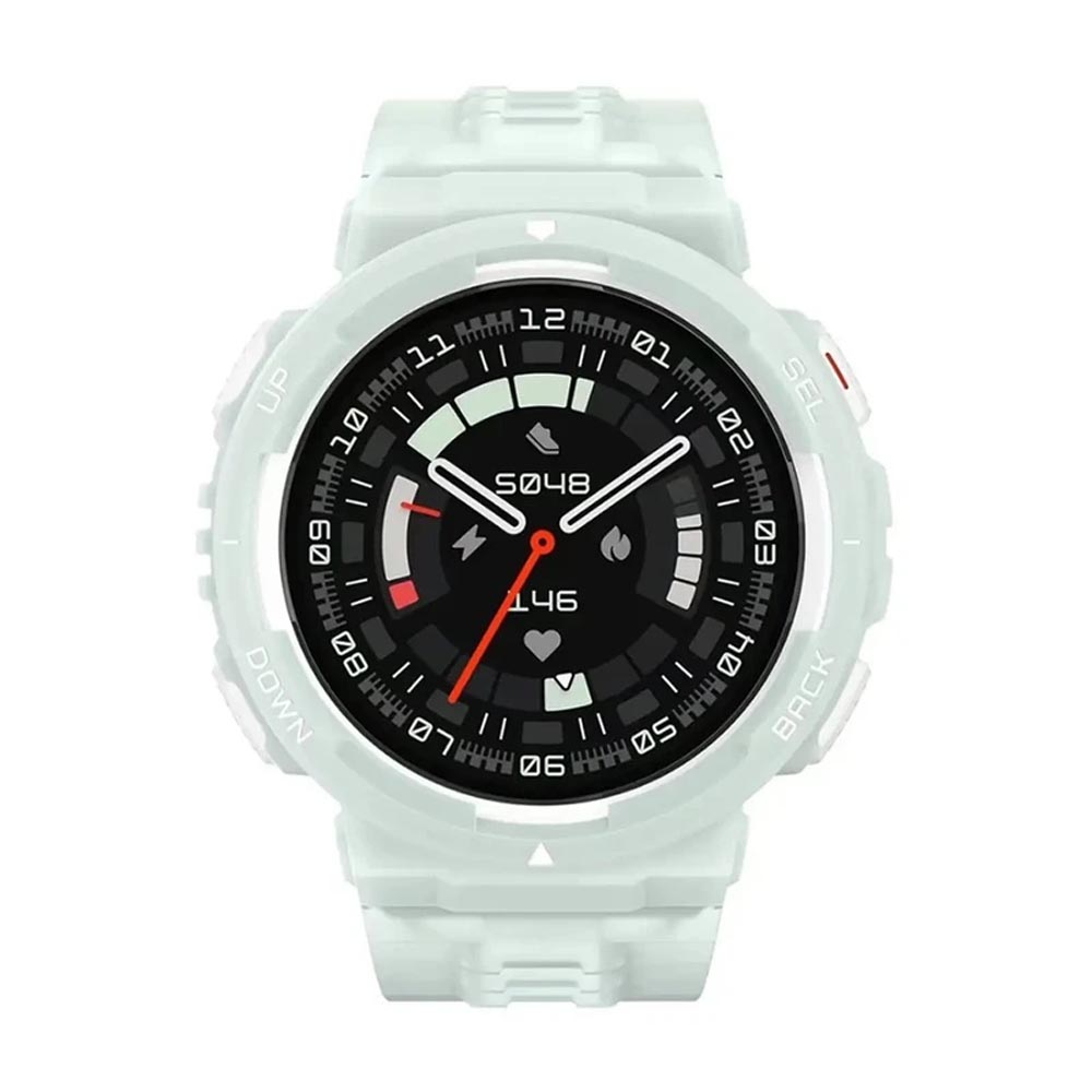 بدنه ساعت با ابعاد 46.62 × 46.62 × 12 میلی‌متر و وزن سبک 34 گرم، راحتی بالایی در استفاده روزمره دارد و با طراحی مینیمال و مدرن خود، ظاهری شیک و اسپرت ارائه می‌دهد. نمایشگر 1.32 اینچی با رزولوشن 360×360 پیکسل و تراکم 277 ppi تصاویر واضح، رنگ‌های زنده و خوانایی بالا حتی زیر نور خورشید ارائه می‌کند. جنس بدنه مقاوم و بند TPU قابل تعویض، امکان شخصی‌سازی ظاهر ساعت و تجربه ارگونومیک در طول روز را فراهم می‌آورد. همچنین مقاومت 10 ATM ساعت، استفاده در شنا و ورزش‌های آبی سبک را امکان‌پذیر می‌کند.