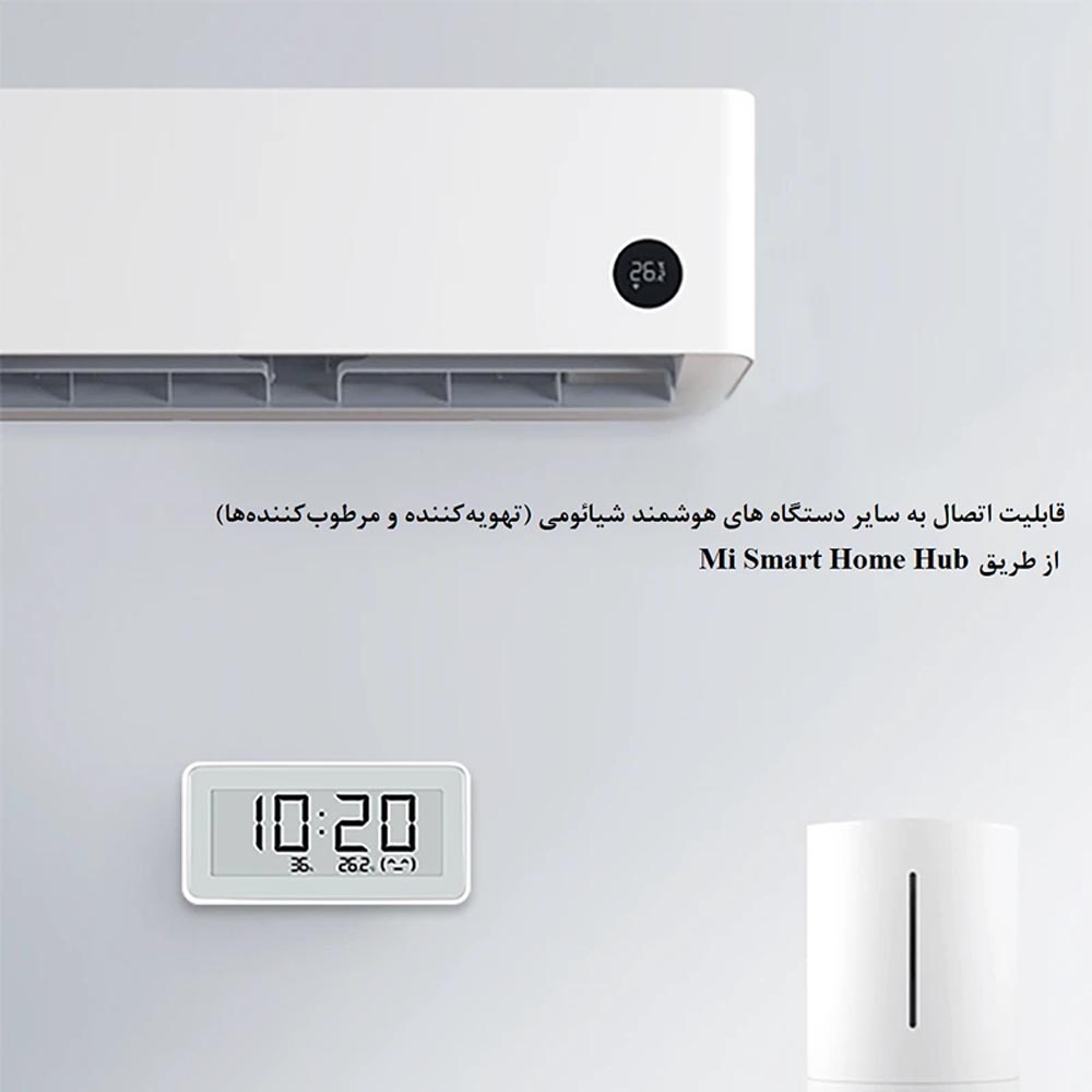 دماسنج و رطوبتسنج LYWSD02MMC از Bluetooth Low Energy 5.0 پشتیبانی میکند و بهراحتی به اپلیکیشن Xiaomi Home / Mi Home متصل میشود.