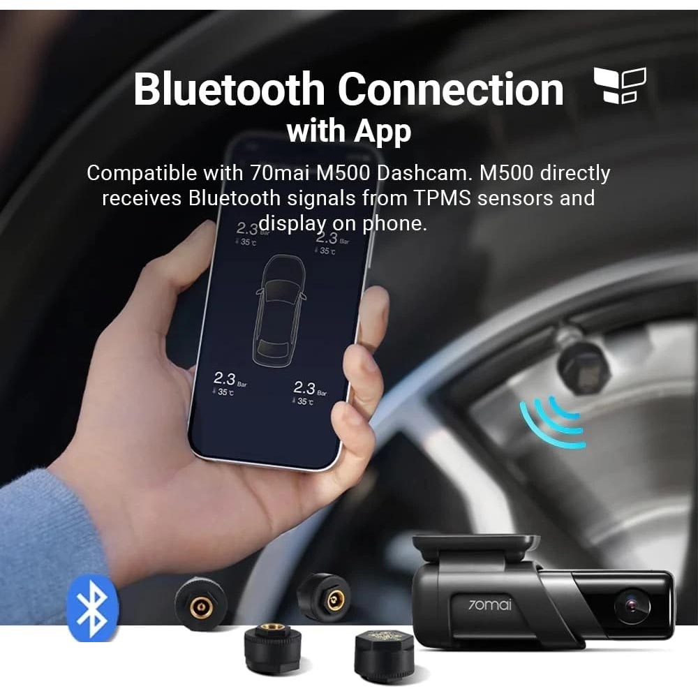 سنسور 70mai T04 External TPMS بهعنوان یک افزونه برای دوربین خودرو 70mai M500 عمل میکند و به شما کمک میکند فشار باد و دمای لاستیکها را بهصورت لحظهای (Real-Time) مشاهده کنید. اطلاعات از طریق اتصال Bluetooth به دوربین ارسال میشود و میتوانید هم در اپلیکیشن و هم از طریق هشدار صوتی دوربین مطلع شوید.