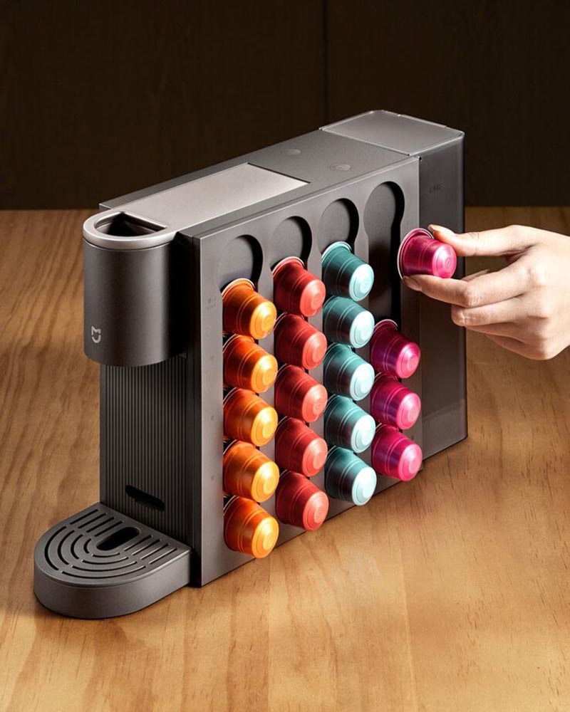 بدنه دستگاه از پلاستیک ABS مات ساخته شده و ظاهر آن کاملاً مدرن و مینیمال است. علاوهبر ظاهر، طراحی باریک دستگاه باعث میشود فضای بسیار کمی اشغال کند. همچنین شیائومی برای نظم بهتر آشپزخانه یک نگهدارنده مغناطیسی کپسول طراحی کرده که میتوان آن را کنار دستگاه یا حتی روی یخچال نصب کرد.
