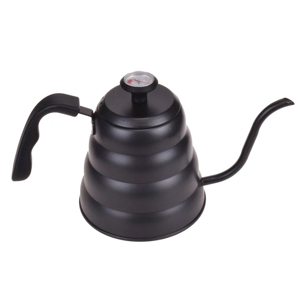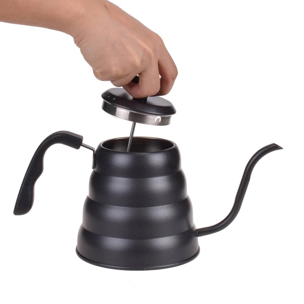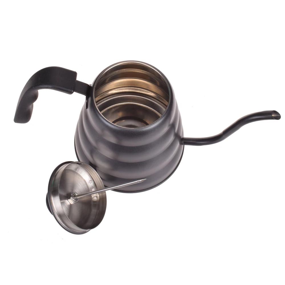 این کتری دارای طراحی گردنغاز (Gooseneck) بوده و امکان کنترل یکنواخت و دقیق جریان آب را فراهم میکند. همچنین دارای دسته ضدحرارت بوده و جهت استفاده ایمن و کنترل بهتر در هنگام سرو آب طراحی شده است. همچنین دارای دهانه باریک بوده و امکان کنترل دقیق و یکنواخت جریان آب را برای دمآوری حرفهای فراهم میکند.